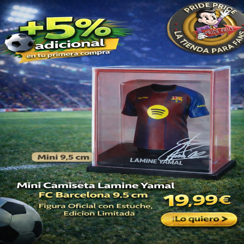 Mini Camiseta Lamine Yamal FC Barcelona 9.5 cm – Figura Oficial con Estuche, Edición Limitada